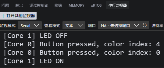 printf("[Core %d] Button pressed, color index: %d\n",