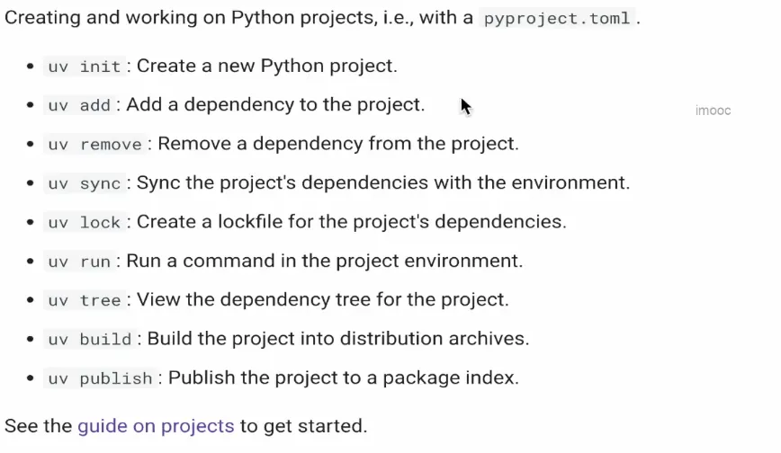 接下来我们可以通过 uv 去创建并初始化一个项目,常见的命令如下
