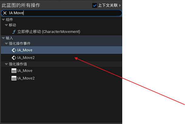 点击右键,输入"IA Move"找到强化操作事件,点击"IA_Move2"
