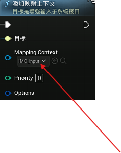 将增强输入本地玩家子系统的节点拖出来,输入关键字"add mapping",在输入那栏就会出现"添加映射上下文"
