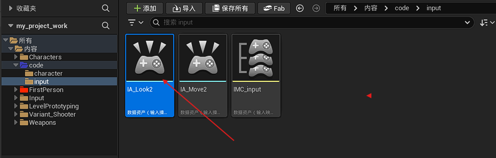 进入文件夹后我们点击添加->找到输入->点击输入操作,将其命名为"IA_Move2",为什么要命名为IA_Move2,因为默认的输入操作名就是IA_Move,为了区分因此命名为IA_Move2