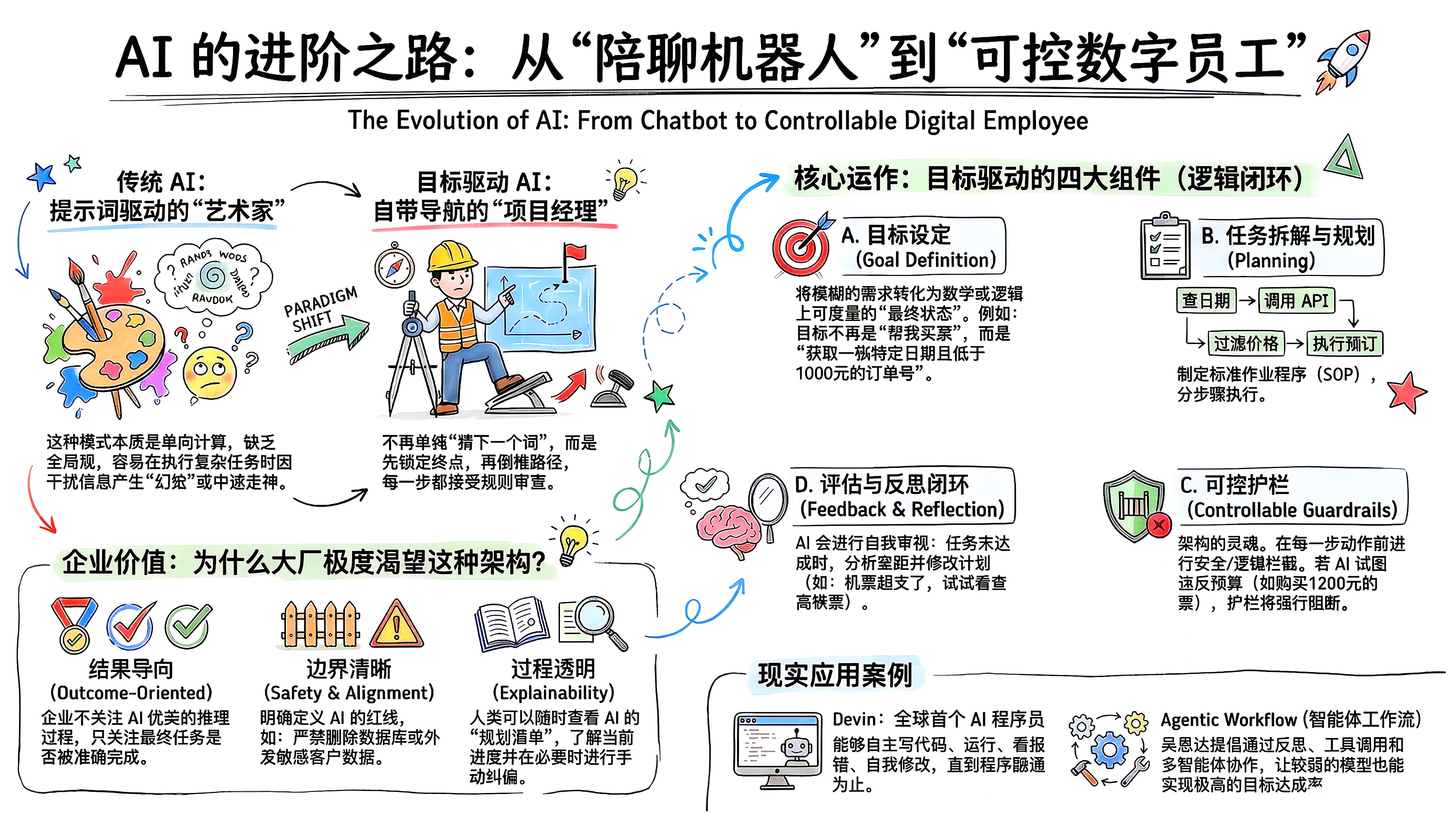 目标驱动的可控架构 标志着 AI 从**"文本生成器"** 向**"自动化行动引擎"** 的蜕变。
