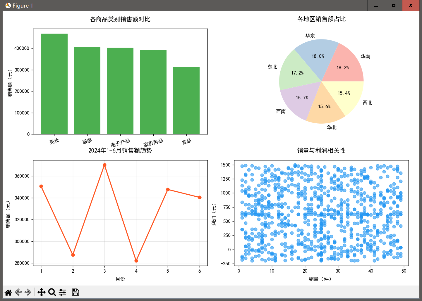 plt.savefig("电商销售数据分析图表.png", dpi=300, bbox_inches="tight") # 适配标签,避免保存时裁剪