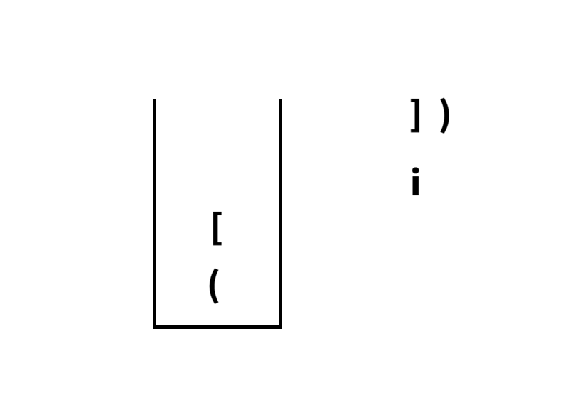 将字符串一个个分开,将左括号放入栈,空的直接判false;不是左括号则开始peek验证是否对应,对应的话就将放进去的左括号pop出去,否则就是右括号没有对应的左括号;最后栈中仍有元素,依旧为false