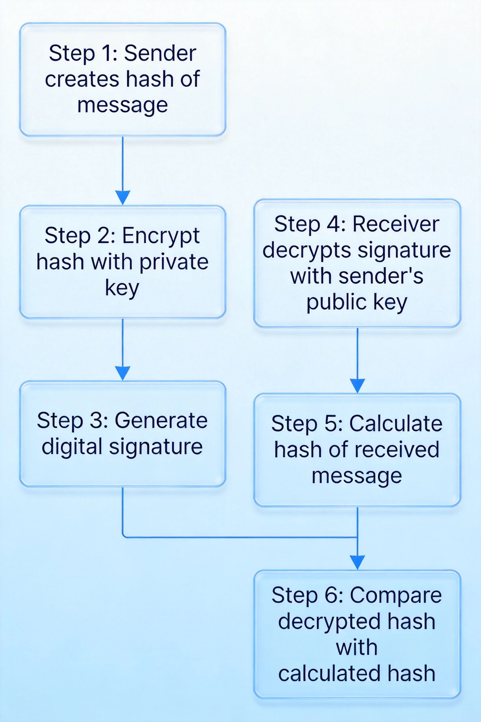 签名验证:接收方收到报文和签名后,首先用发送方的公钥解密签名得到摘要 A,同时对收到的原始报文计算摘要 B,对比 A 和 B,若一致则签名有效,否则说明报文被篡改或签名伪造