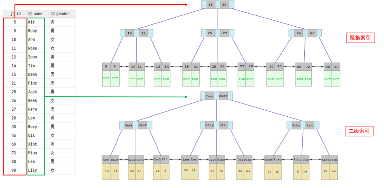 注意 : 最左前缀法则中指的最左边的列,是指在查询时,联合索引的最左边的字段 (即是第一个字段) 必须存在,与我们编写SQL时,条件编写的先后顺序无关。