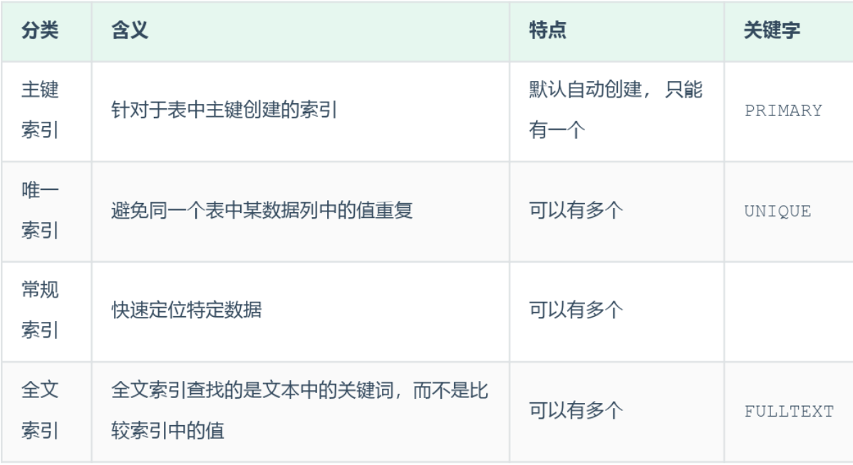 create [ unique | fulltext ] index index_name on table_name ( index_col_name,... );