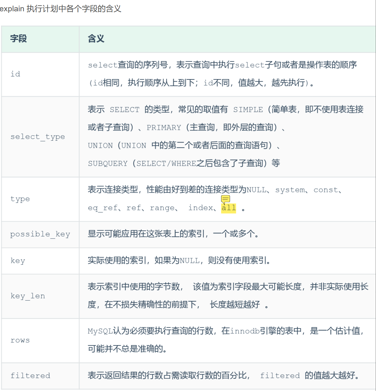 EXPLAIN SELECT 字段列表 FROM 表名 WHERE 条件 ;