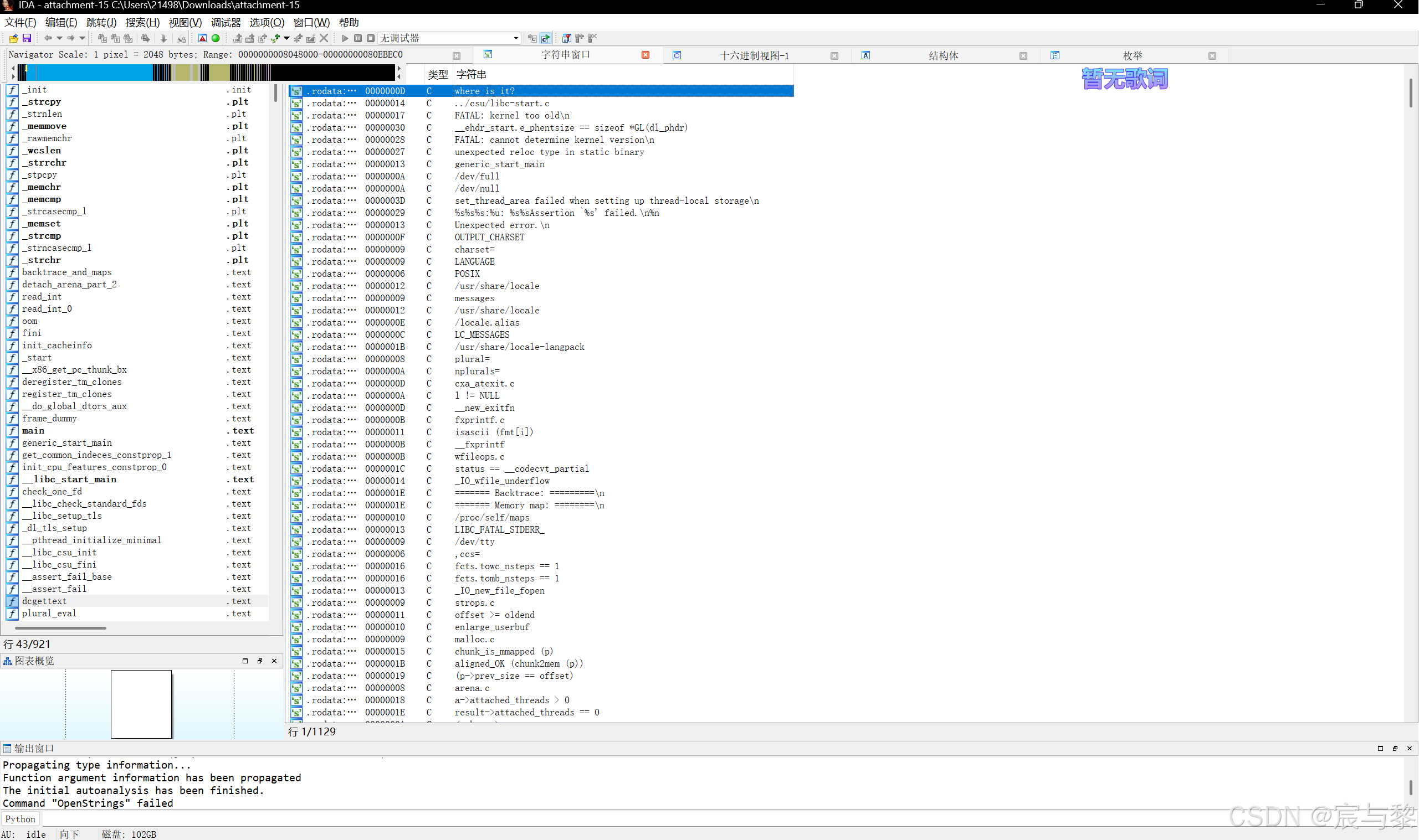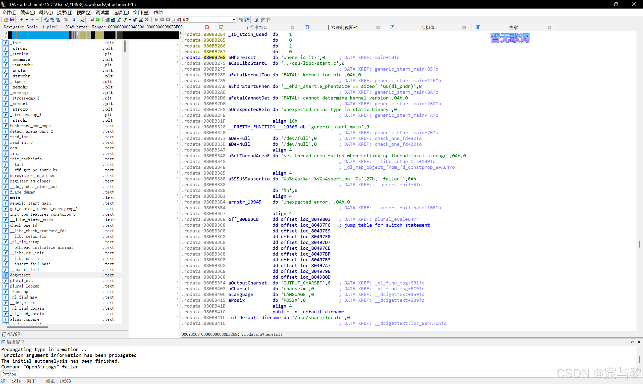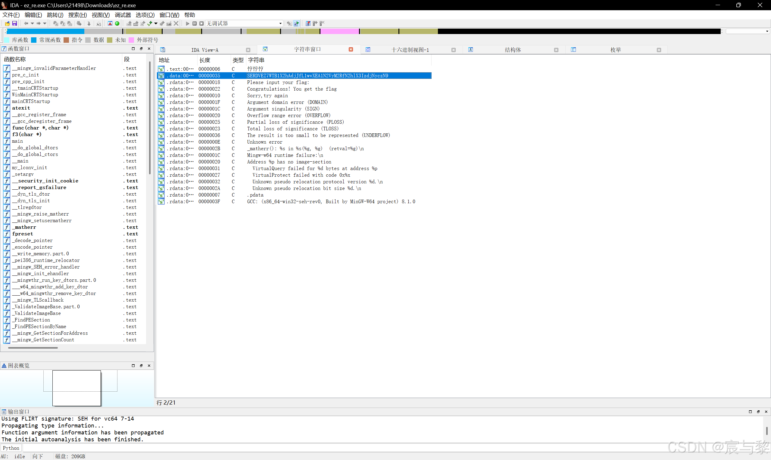 用ida64打开然后shift+F12