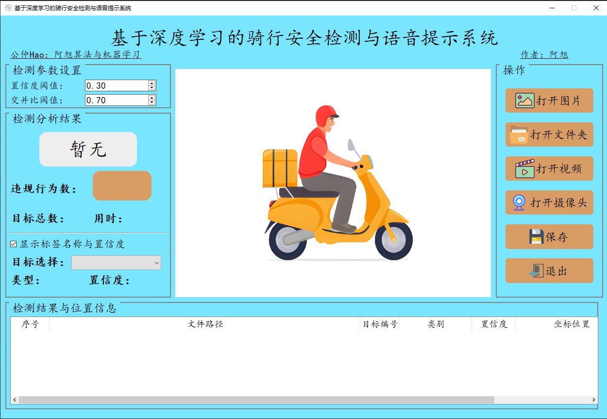 博主基于Pyqt5框架开发了此款骑行安全检测与语音提示系统,即文中第一部分的演示内容 ,能够很好的支持图片、视频及摄像头进行检测,同时支持检测结果的保存。
