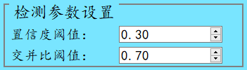 交并比阈值:也就是目标检测时的iou参数,对检测框重叠比例iou大于该阈值的目标框进行过滤【也就是说假如两检测框iou大于该值的话,会过滤掉其中一个,该值越小,重叠框会越少】;