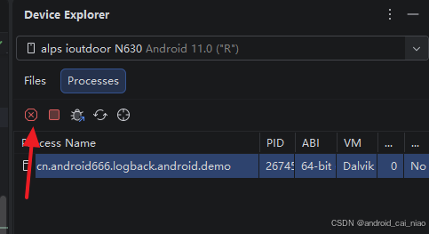 或者点击进程列表中的 Force stop process 按钮(需要先选择好进程),如下: