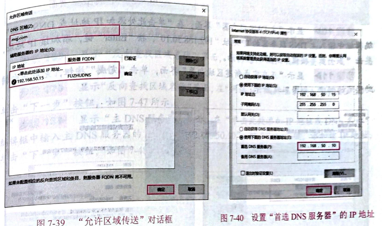 步骤 6▶ 设置辅助 DNS 服务器的首选 DNS 服务器的 IP 地址为 "192.168.50.10",如图 7-40 所示。