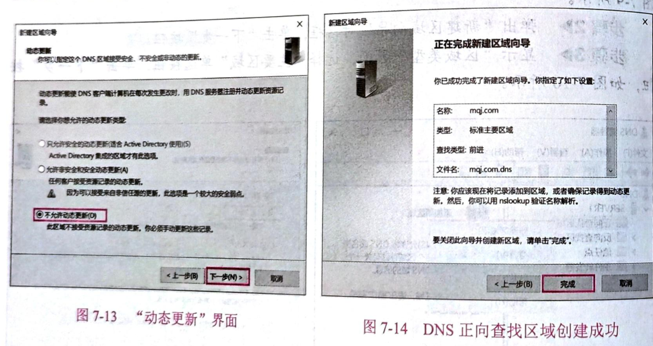 步骤 7▶ 显示 "正在完成新建区域向导" 界面,单击 "完成" 按钮,完成 DNS 正向查找区域的创建,如图 7-14 所示。