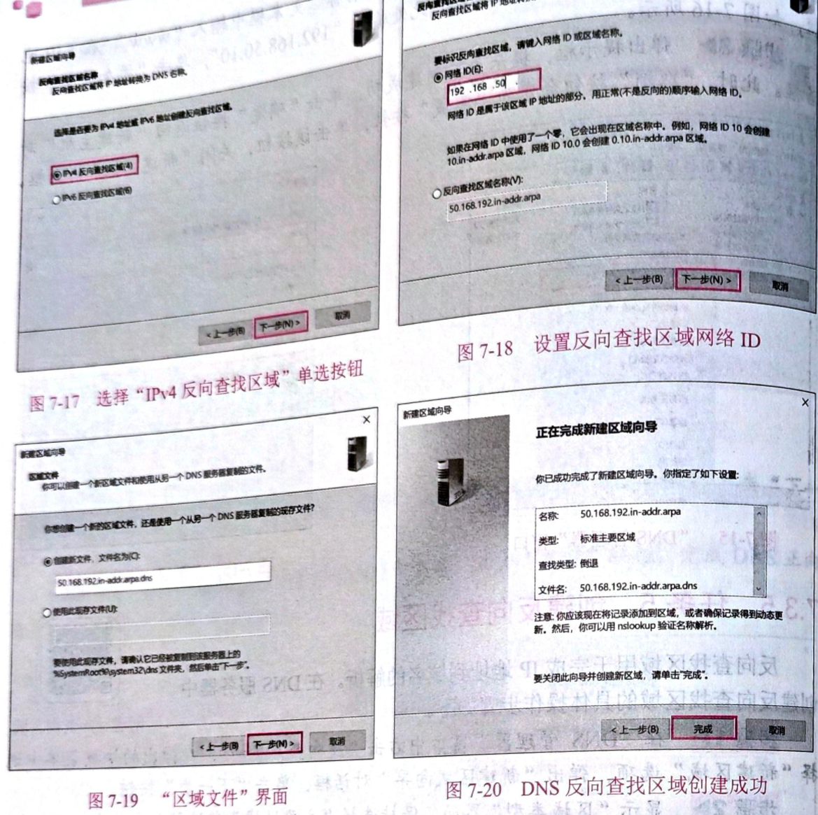 步骤 4▶ 显示 "反向查找区域名称" 界面,在 "网络 ID" 编辑框中输入 "192.168.50",单击 "下一步" 按钮,如图 7-18 所示。