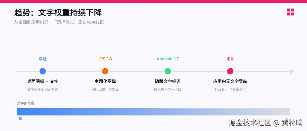 更关键的是,这反映了一个底层趋势:用户界面越来越视觉化,文字的权重在持续下降。