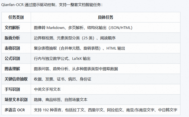 Qianfan-OCR 通过提示驱动控制,支持一整套文档智能任务: