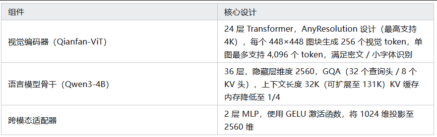 Qianfan-OCR 作为 4B 参数统一端到端模型,通过三大核心设计解决上述问题,实现文本识别、布局分析、语义理解的一体化: