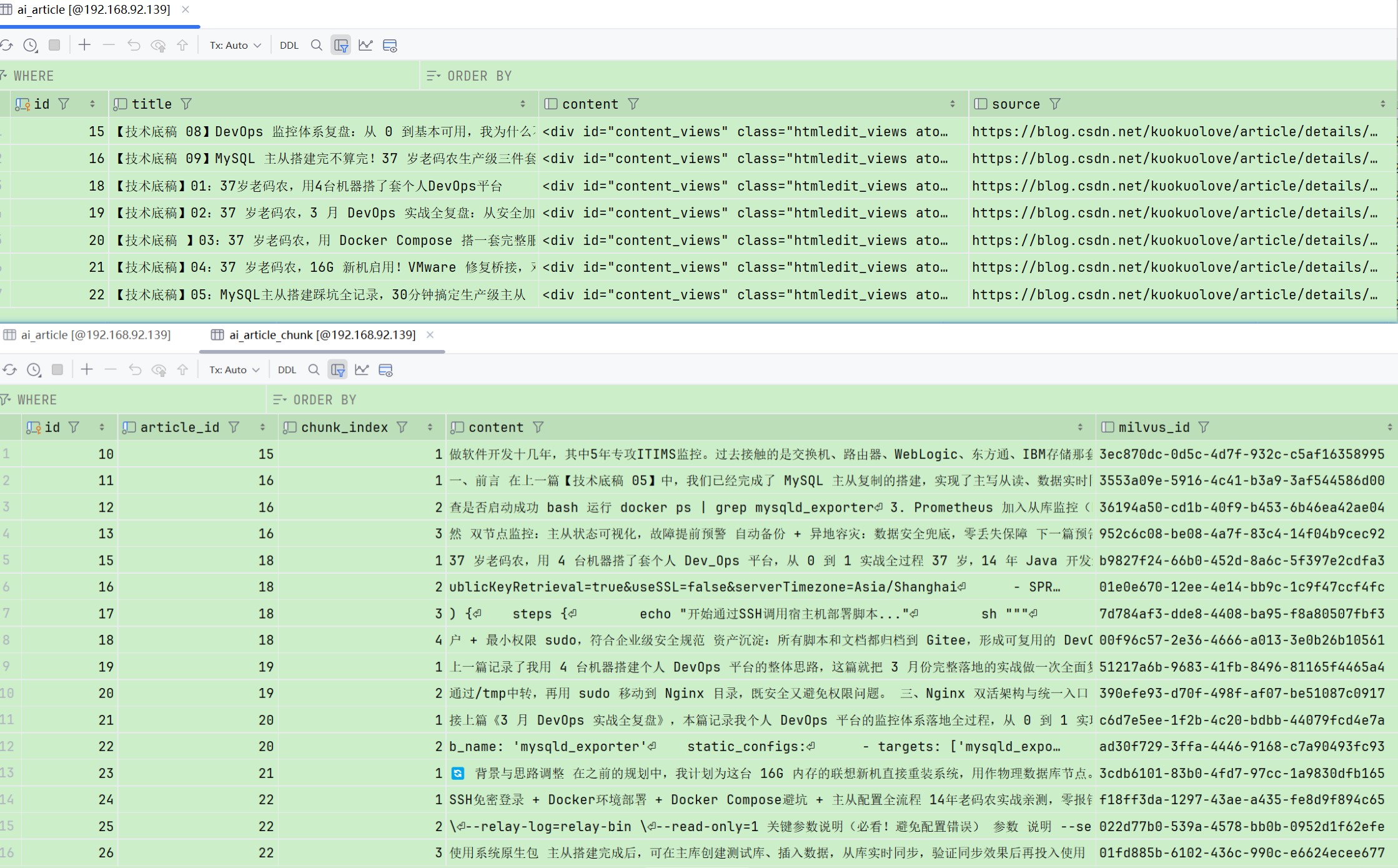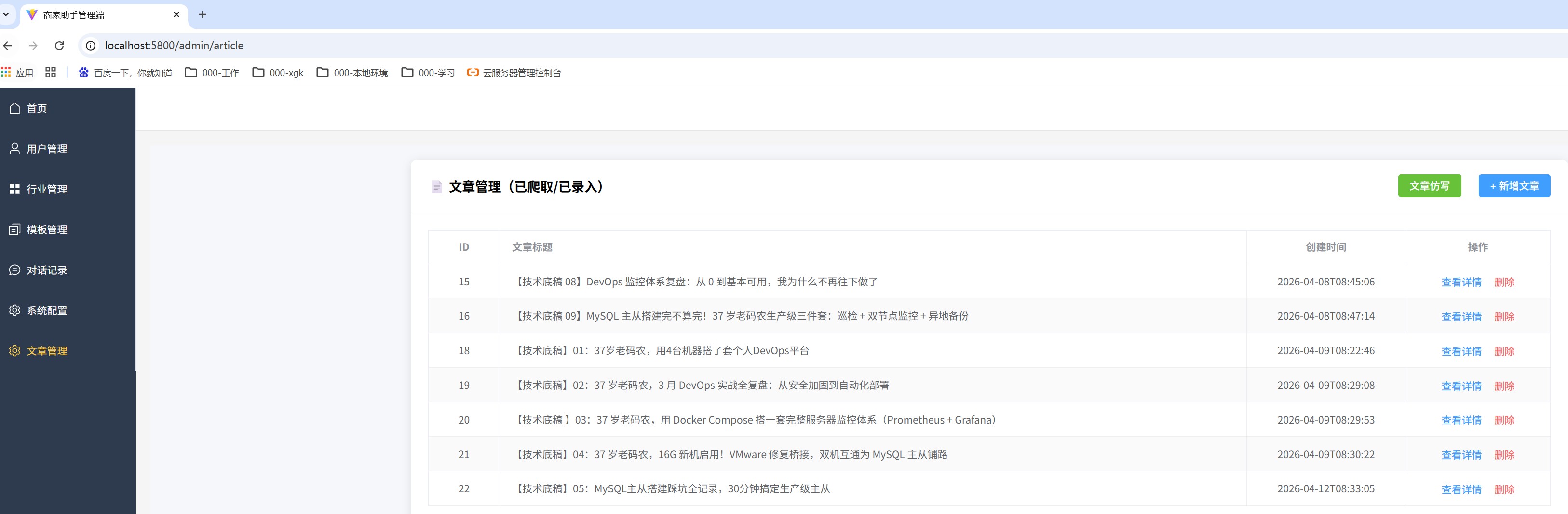 继产品底稿 01 定下 V1.1 个人专属 AI 写作助手方向后,这段时间一直在闷头推进核心链路落地。目前商助慧 V1.1 版本已经完成最关键的底座建设:CSDN 文章爬虫、MySQL 结构化存储、Milvus 向量入库、前端页面展示,全流程正式跑通。