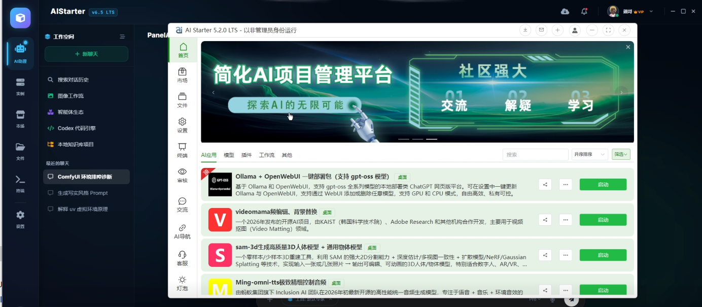 本地服务端抽离: 将AIStarter的后端独立出来,专门处理本地GPU调用、容器调度和文件流。