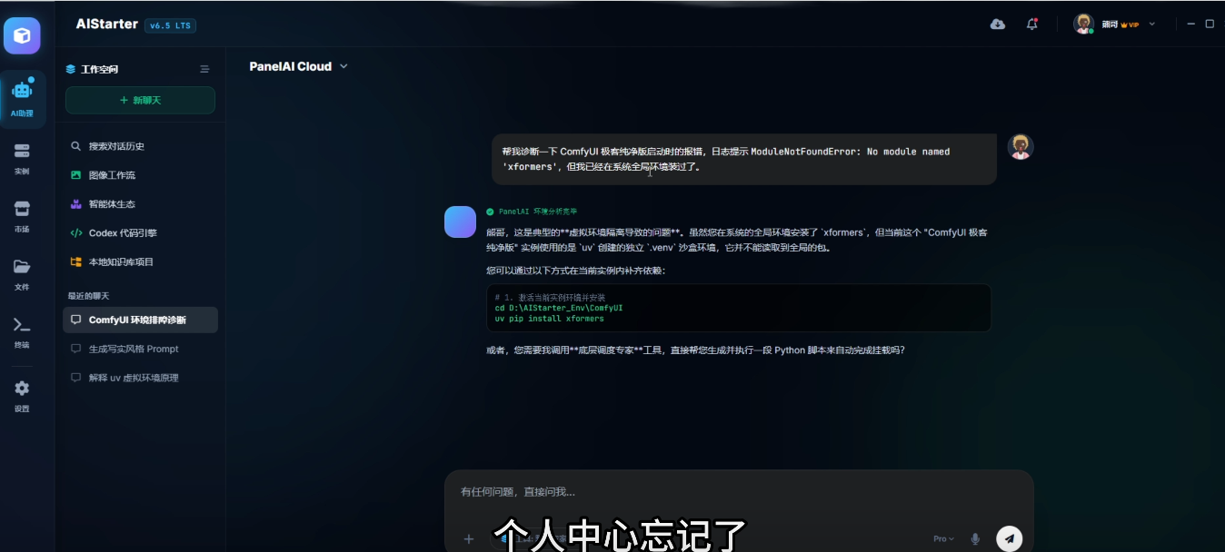 - 云端API无缝整合: 这是最关键的一步,我们在AIStarter客户端中,直接接入了Panelai后端的标准API。这样一来,无论是云端实例的监控、对话窗口的交互,还是模型市场的资源拉取,本地与云端都能保持高度一致的体验。