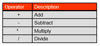 =, >, <, >=, <=, !=, <> -