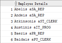 SELECT last_name || job_id AS "Employee Details" FROM employees;
