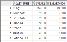 SELECT last_name, salary, salary + 300 FROM employees;