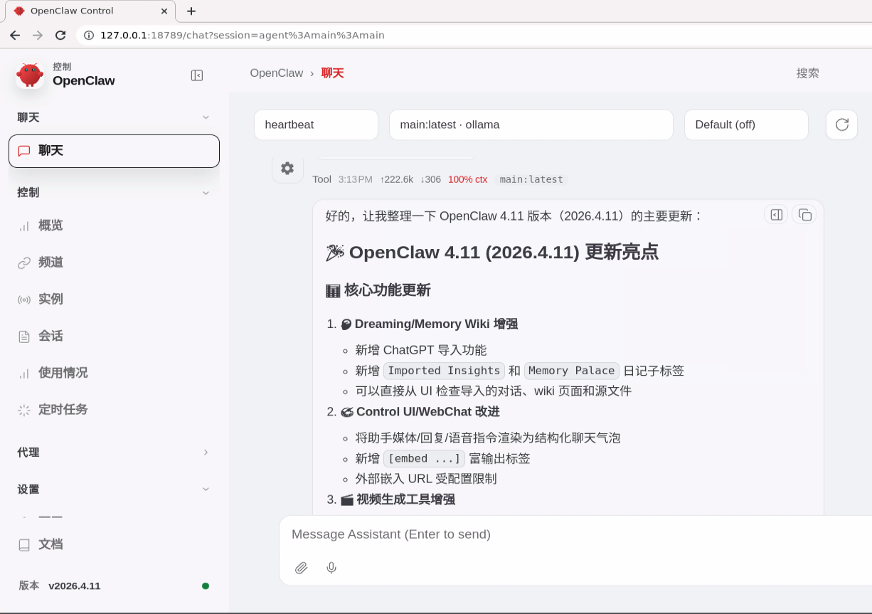 OpenClaw v2026.4.11 是一个专注于用户体验优化 和功能完善的重要版本。它不仅在记忆系统、视频生成等核心功能上实现了重大突破,还对多平台集成、安全性和开发者体验进行了全面优化。