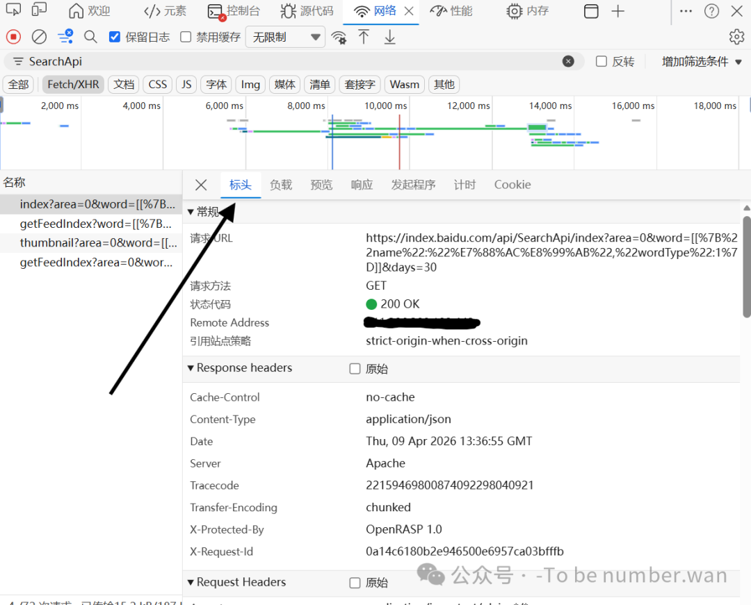 点击目标请求后,在右侧详情页选择: 🖱️ 中文:标头 |英文:Headers