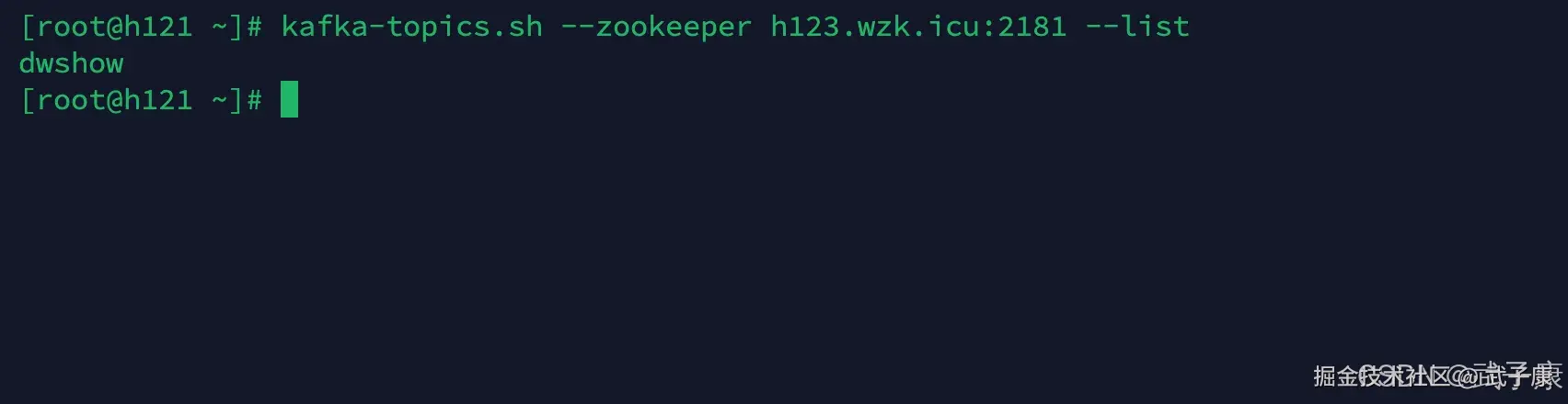 kafka-topics.sh --zookeeper h123.wzk.icu:2181 --list