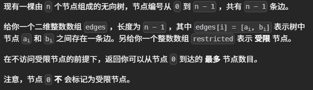 int reachableNodes(int n, int **edges, int edgesSize, int *edgesColSize, int *restricted, int restrictedSize)