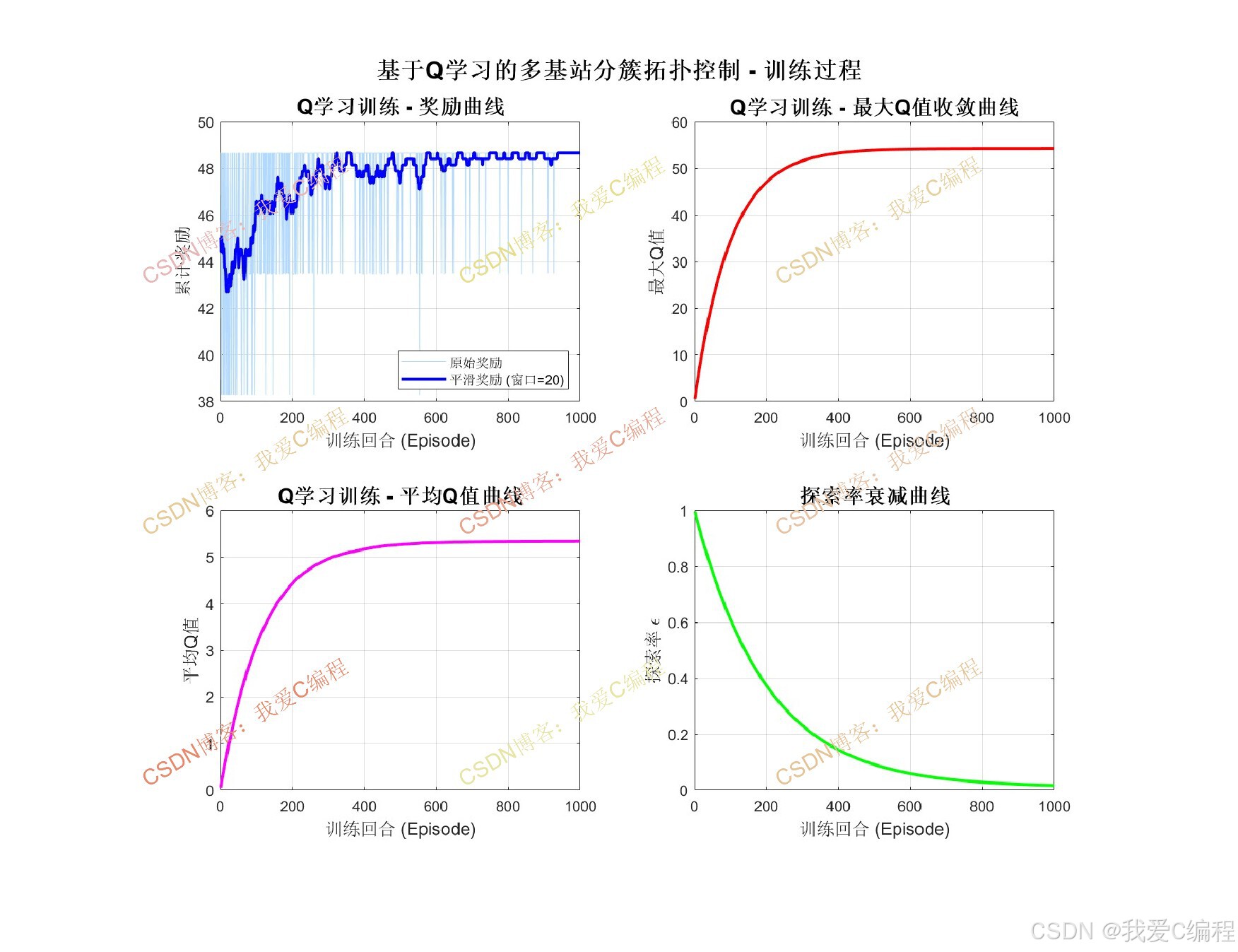 Q学习是一种无模型的强化学习算法,通过"试错"机制让智能体在与环境交互过程中学习最优策略。在本算法中,每个簇头节点作为一个智能体,其目标是从多条可达不同基站的路径中选择能量效率最高、时延最低的最优转发路径。