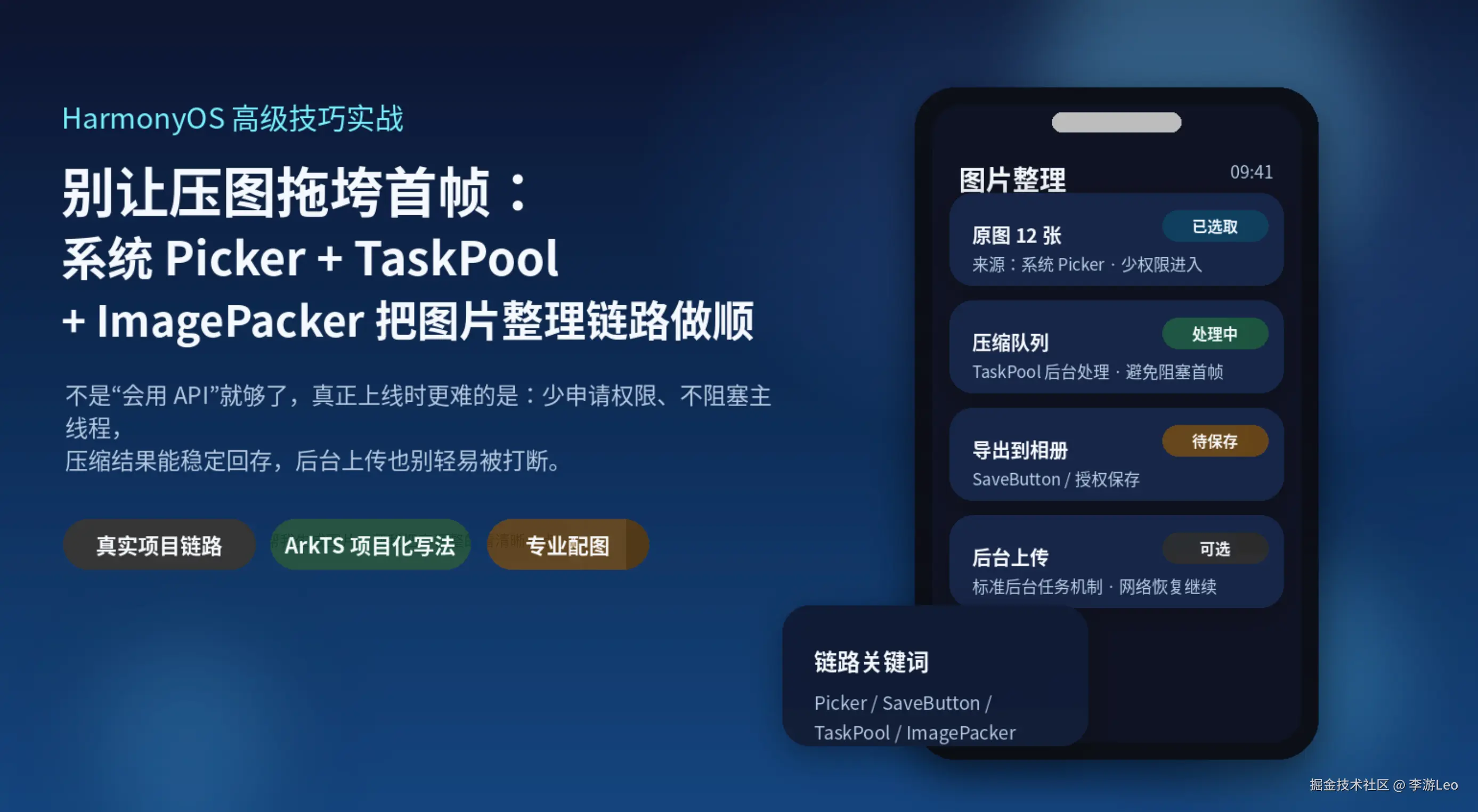 HarmonyOS 这几年给图片、文件、后台任务这些场景配的系统能力,其实已经很完整了。真正容易踩坑的,不是能力不够,而是链路设计还停留在"能跑就行"。