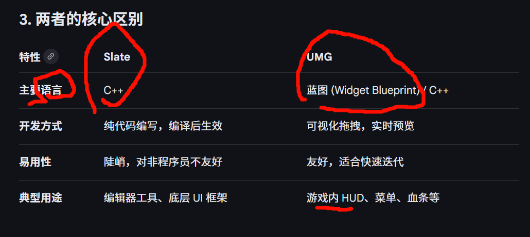 Slate 是底层框架,而 UMG 是建立在 Slate 之上的可视化封装层。