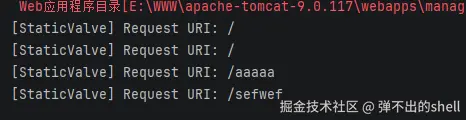 System.out.println("[StaticValve] Request URI: " + request.getRequestURI());