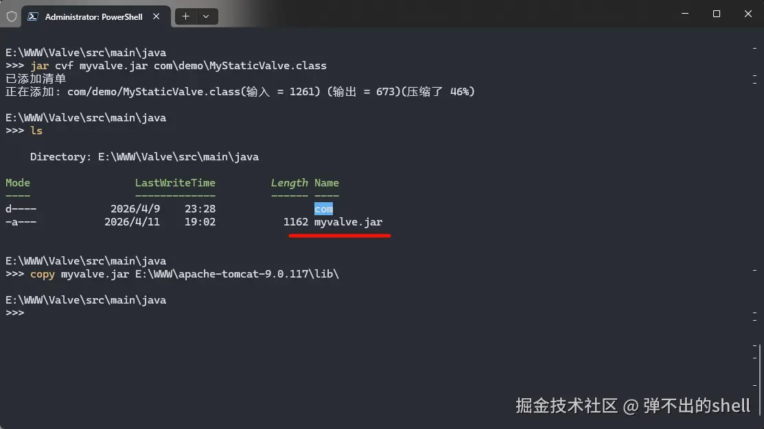 javac -encoding UTF-8 -cp "E:\WWW\apache-tomcat-9.0.117\lib\catalina.jar;E:\WWW\apache-tomcat-9.0.117\lib\servlet-api.jar" com\demo\MyStaticValve.java