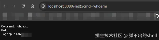 然后访问任意路径带上 cmd 参数即可执行命令: