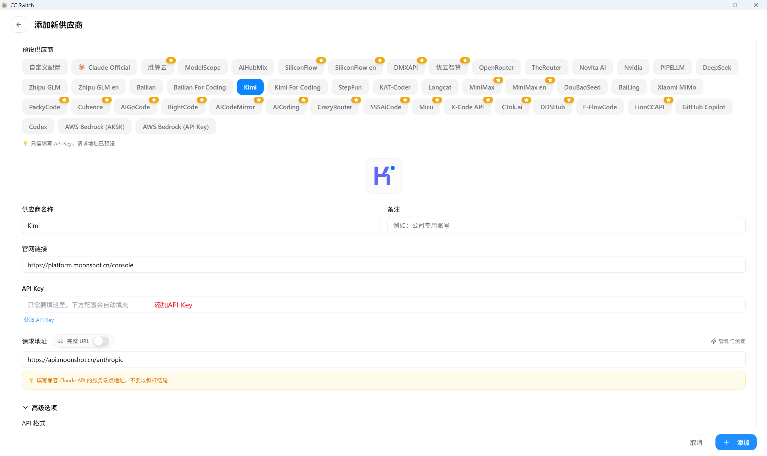 我这里选择 Kimi(本来想配置千问的,没配成功)