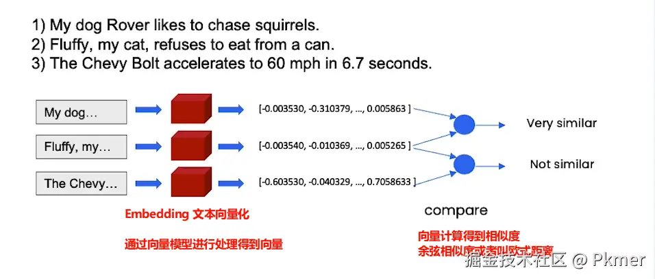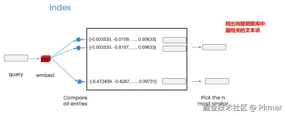 当用户发来一段话的时候,我们想将用户发送的话,进行Embedding向量化。然后与向量库中的所有向量进行比较,找出top-N最相关的文本。