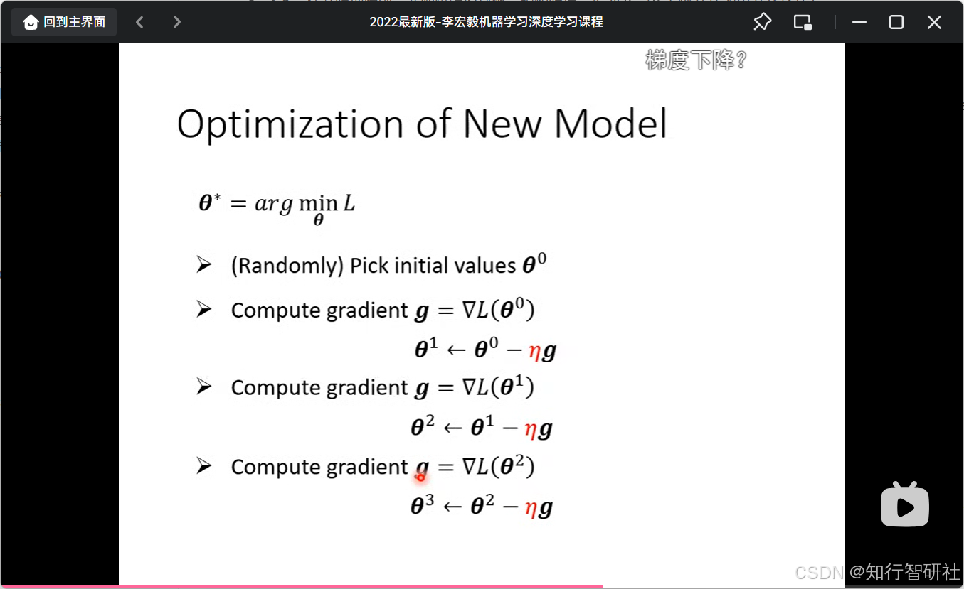 图片左上角的公式定义了整个优化过程的目标: θ∗=argminθL \theta^* = \arg \min_{\theta} L θ∗=argθminL