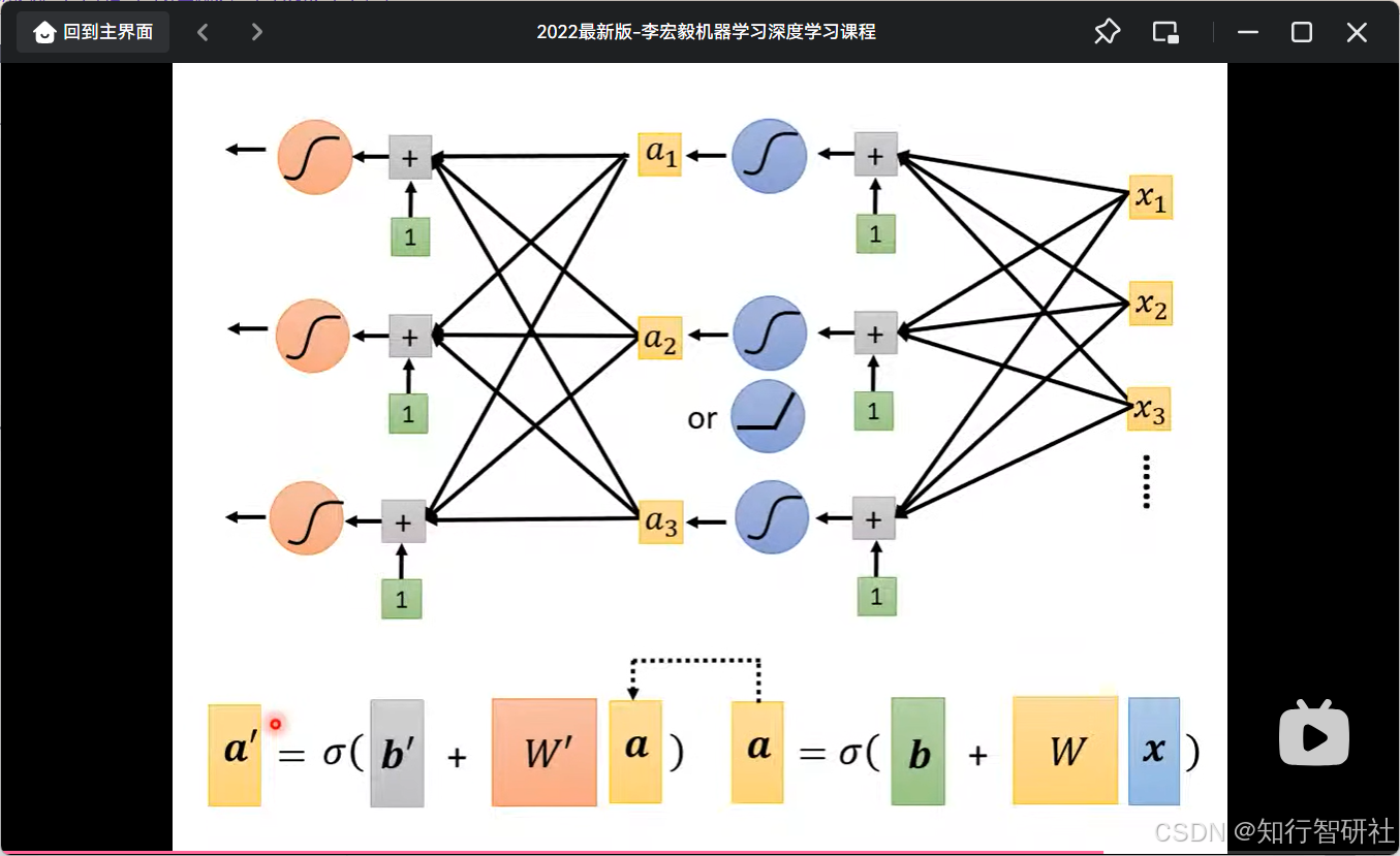 - 灵活性:图中的 "or" 符号和不同颜色的激活函数暗示了激活函数是可以灵活替换的模块(Sigmoid vs ReLU),而矩阵运算的结构保持不变。