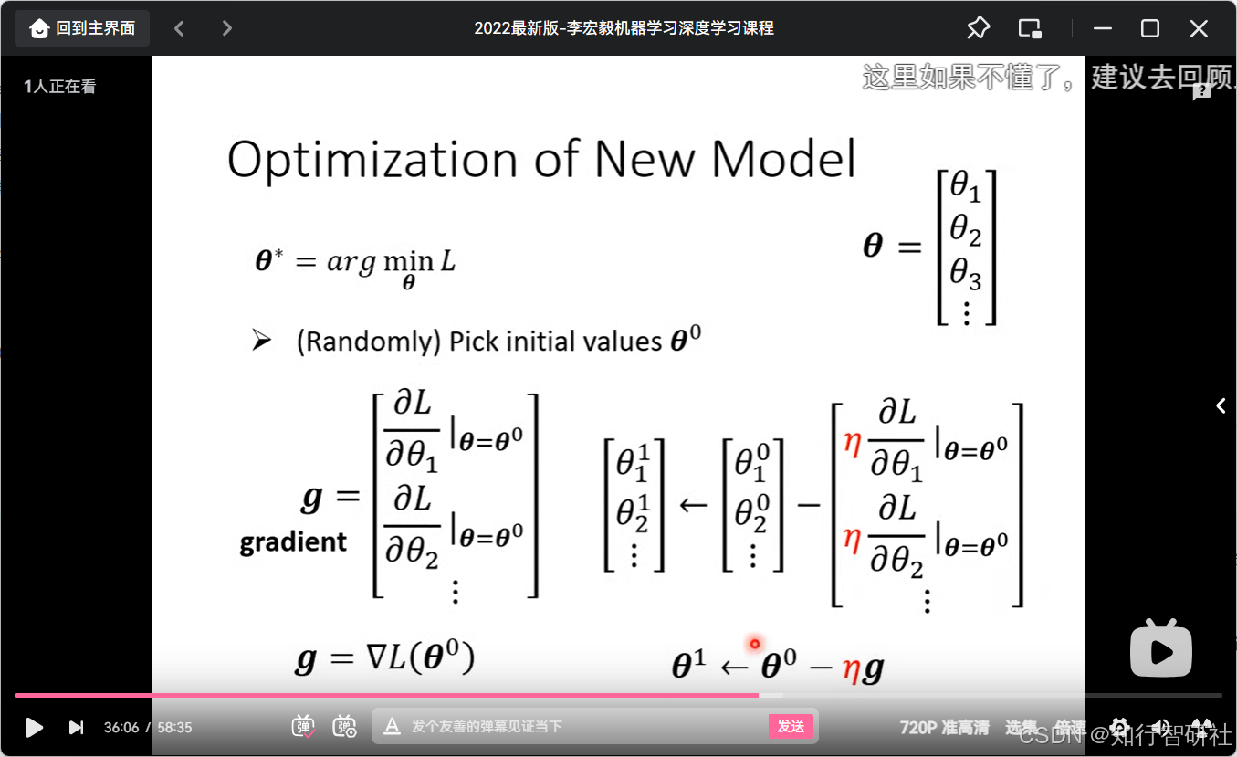 (Randomly) Pick initial values θ⁰ - 含义 :在开始训练前,先随机给参数赋一组初始值,记为 θ0\theta^0θ0(θ\thetaθ 上标 0 代表第 0 次迭代)。