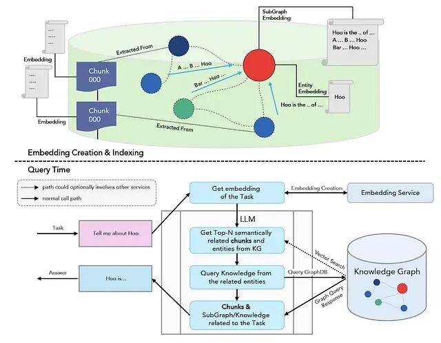 传统RAG的流程清晰:对文档分块,将分块嵌入向量数据库,查询时检索最相关的top-k分块,作为上下文传递给LLM,生成回答。