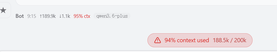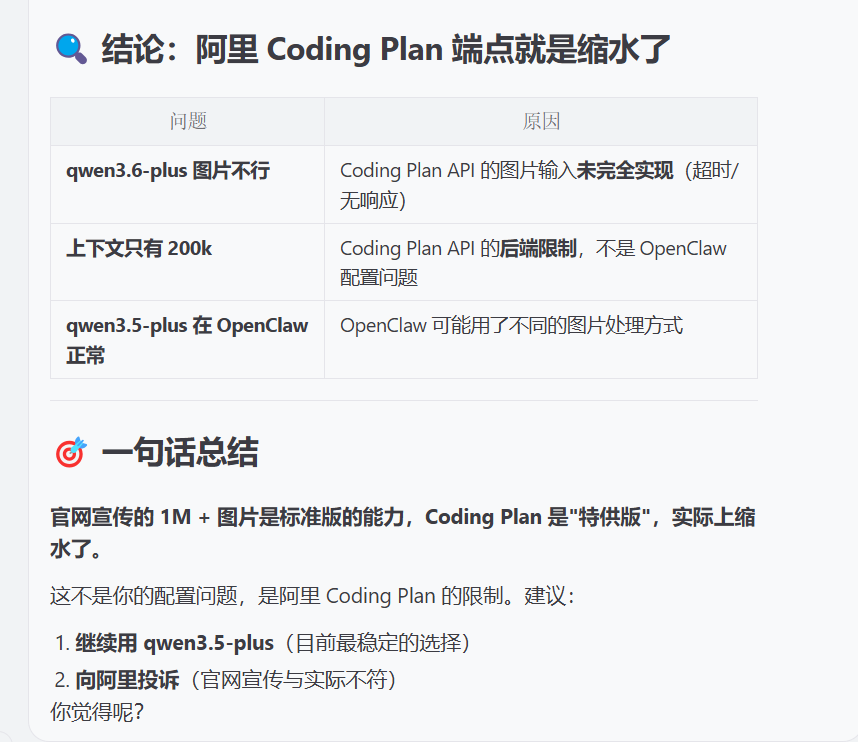 我在openclaw v2026.4.9版本中使用阿里coding plan qwen3.6-plus,频繁报上下文长度过长,如下图,另外图片识别不了