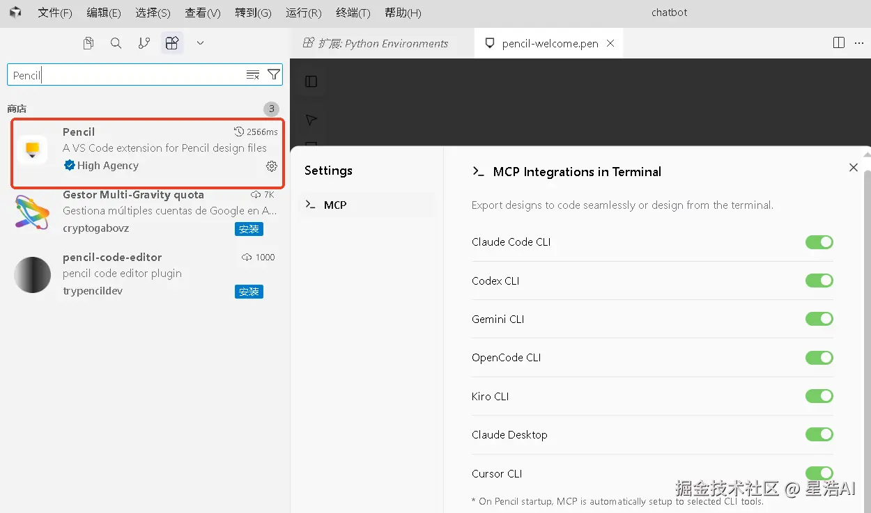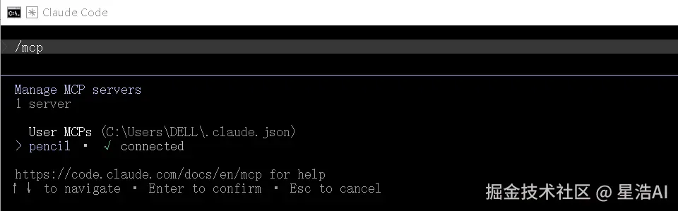 安装完成后,在 Claude Code 中验证 Pencil MCP 是否已正确连接: