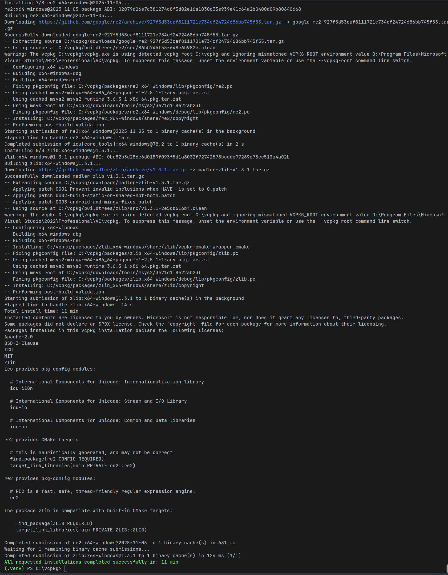 .\vcpkg install icu:x64-windows zlib:x64-windows re2:x64-windows