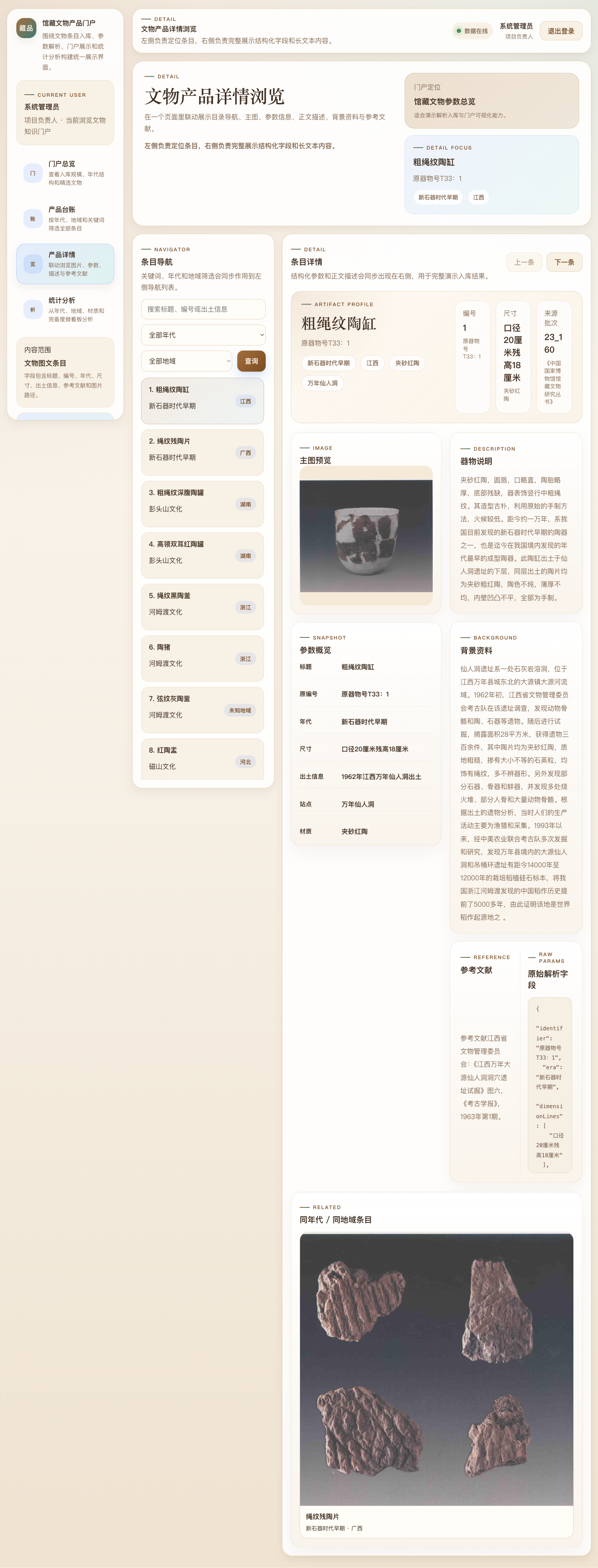 - 搭建文物目录门户,实现条目台账、详情联动与统计展示;