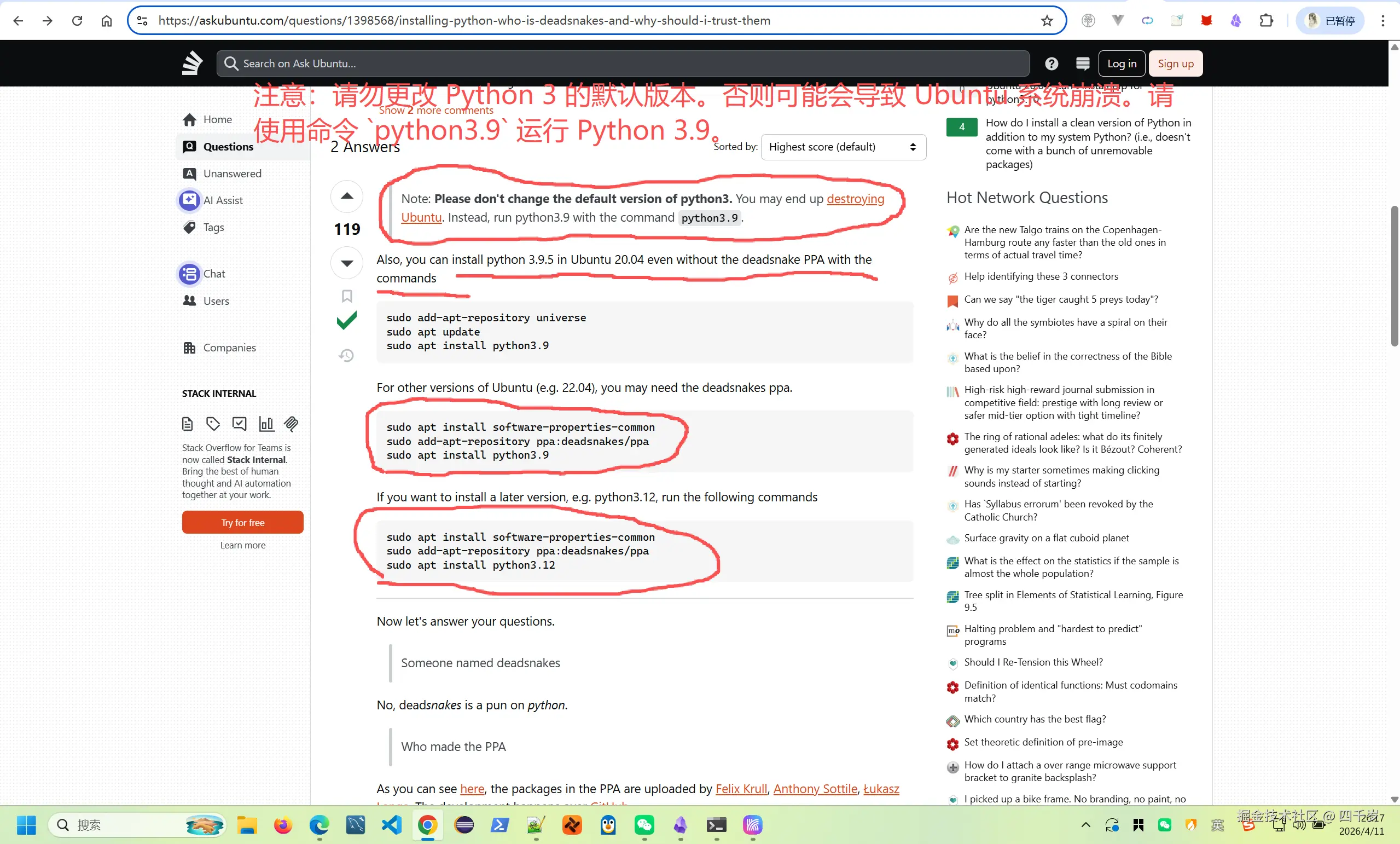 Ubuntu 社区关于升级 Python 版本的讨论: askubuntu.com/questions/1...