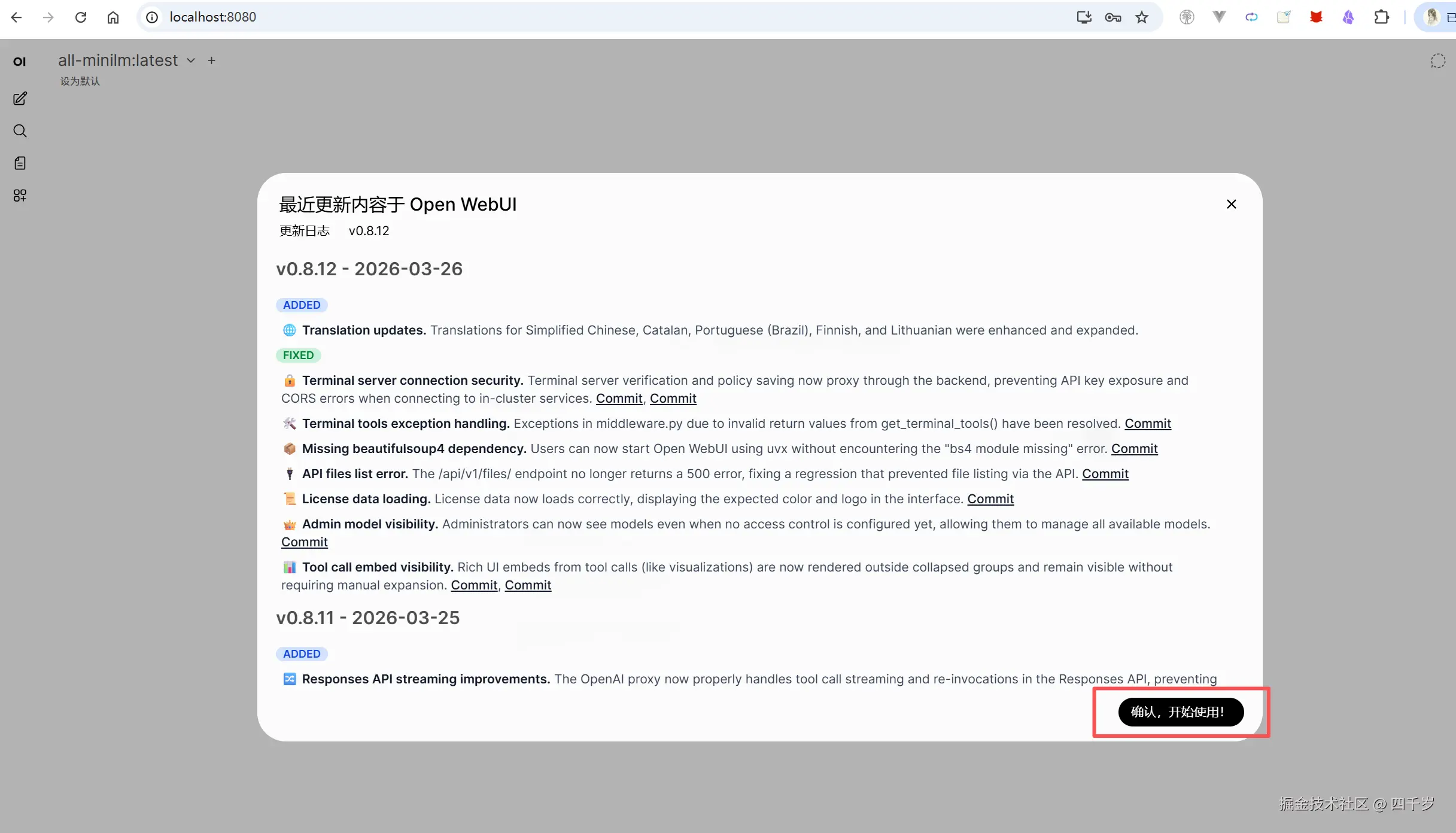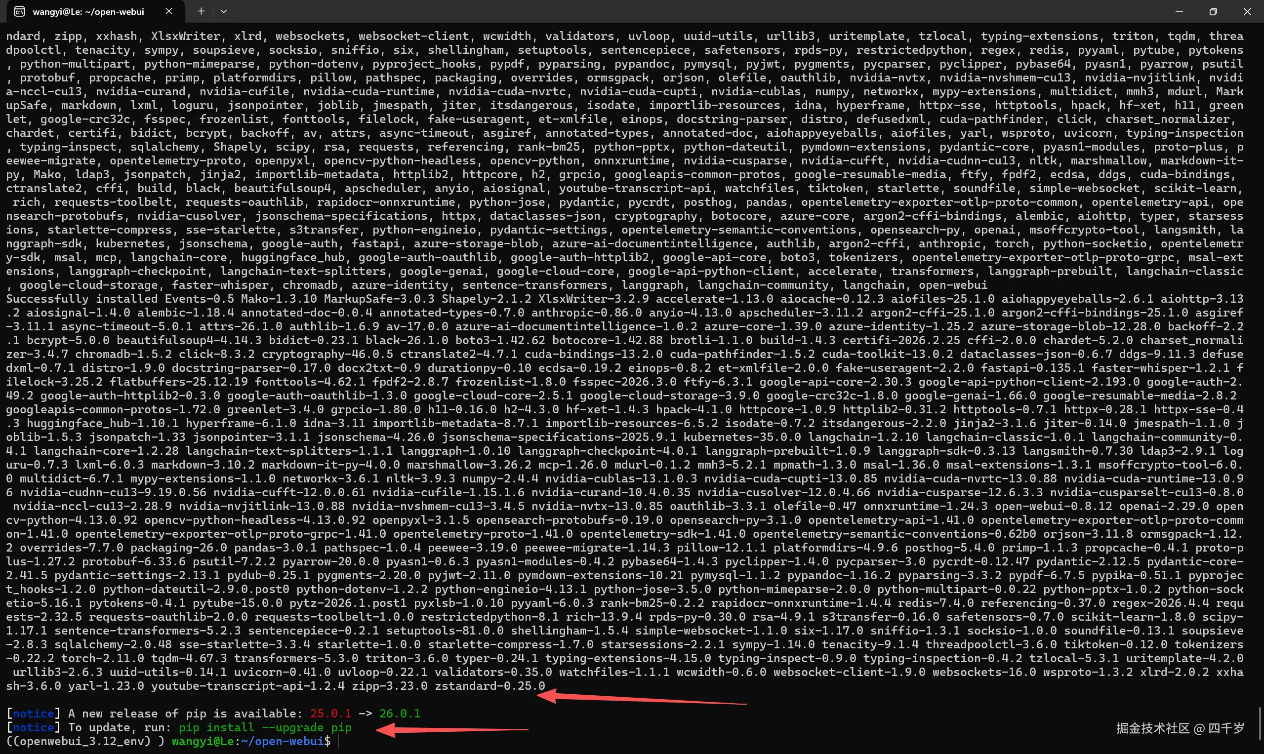 source openwebui_3.12_env/bin/activate 命令仅对当前终端窗口生效,并非永久生效。后续每次新开终端窗口,若需使用 Python 3.12 版本,需先进入 ~/open-webui/ 目录,重新执行该命令激活虚拟环境。